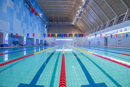 鄭州奧體中心游泳館位于鄭州奧體項(xiàng)目東南端(中原區(qū)長(zhǎng)椿南路與博體路交匯處),是鄭州市甲級(jí)游泳場(chǎng)館,鄭州奧體中心游泳館建筑面積1.9萬平方米,館內(nèi)設(shè)有3100個(gè)固定座席,擁有標(biāo)準(zhǔn)10道50米競(jìng)賽池,10道50米訓(xùn)練池,10道25米教學(xué)池,既有可以承辦國際賽事的專業(yè)級(jí)比賽場(chǎng)館,又有滿足全民運(yùn)動(dòng)的標(biāo)準(zhǔn)泳池,更配備了完善的更衣休閑區(qū)及全館智慧科技系統(tǒng),市民朋友可以盡享宏偉水上場(chǎng)館的視覺沖擊與暢快運(yùn)動(dòng)的極致體驗(yàn)!