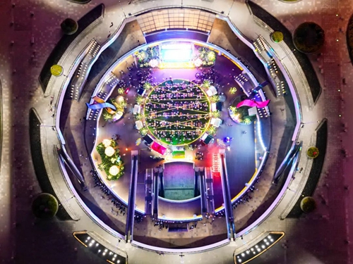 熠熠星光耀向夜空,呼應著霓虹閃爍的奧體中心,飄散的煙火氣和美食的香氣充斥著整個下沉空間,舞臺音樂節奏歡快、火爆酷炫,在霓虹交錯的空間里,一天的時間仿佛被夜市拉長,這是年輕人帶給這座城市的無限活力。