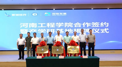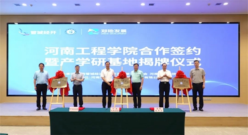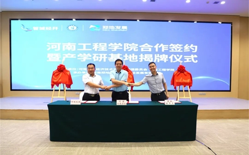 會上,河南工程學院、管城經(jīng)濟技術開發(fā)區(qū)管理委員會、河南鄭地產(chǎn)城融合建設發(fā)展有限公司共同簽署產(chǎn)學研合作協(xié)議,并現(xiàn)場為河南工程學院校外實習基地、產(chǎn)學研合作基地、就業(yè)基地揭牌。
