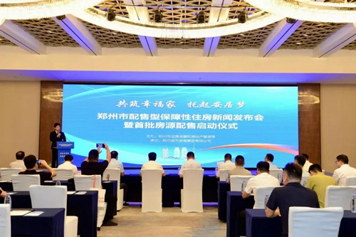 7月29日上午,由鄭州市住房保障和房地產管理局主辦,鄭州城市發展集團有限公司承辦的鄭州市配售型保障性住房新聞發布會暨首批房源配售儀式在奧體建國飯店中和廳舉行。