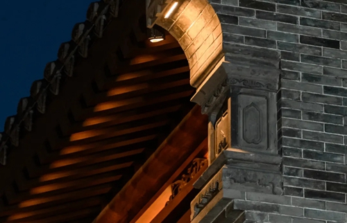 與之相對的17號樓主題為仙鶴,主題靈感來自于“仙鶴的故鄉”鶴壁。建筑上精美的墀頭也表達了此棟院子的主題,其上段位仙鶴,寓意松鶴延年,墀頭下端位仙鹿,寓意福祿綿長。而這處雕刻精美又涵義豐富的墀頭設計來源于河南鶴壁的古城摘星臺公園。