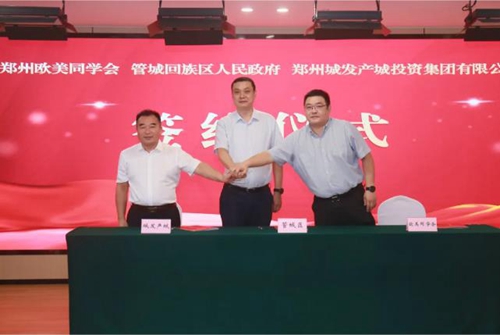 會上,管城區人民政府、鄭州歐美同學會及鄭州城發產城投資集團有限公司三方代表正式簽署了戰略合作協議,與會領導共同為鄭州歐美同學會海創中心管城分中心及青年創新創業基地進行揭牌。