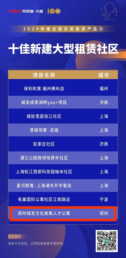 近日,克而瑞2024年度中國住房租賃產品力榜單揭曉,鄭州城發文化美寓人才公寓憑借卓越的綜合產品力,榮獲“十佳新建大型租賃社區”稱號。這一榮譽不僅是對鄭州城發美寓人才公寓項目的高度認可,更是對其在住房租賃領域創新實踐的肯定。