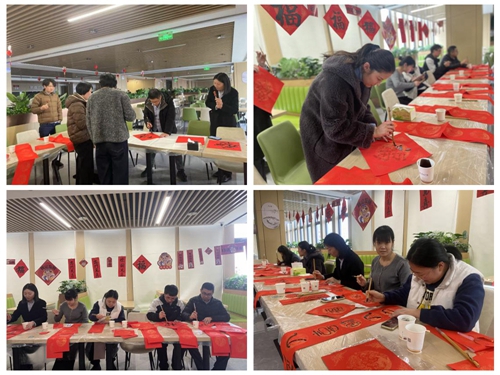 在這如詩如畫的美好時刻,我們以一副春聯凝聚夢想的光輝,迎接新春的腳步。活動伊始,來自城發產城公司工程設計部的張馨友老師現場揮毫潑墨,他的筆下,每一劃都似春風拂面,每一點都像細雨潤心,將美好的愿景與溫暖的問候融入到那一幅幅靈動的字跡之中。與此同時,活動現場精心準備了豐富的書寫工具,這里,不僅是紙墨交融的地方,更是心靈交匯、智慧碰撞的空間,在揮灑筆墨的過程中體驗到了傳統文化的獨特魅力。