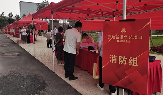 鄭地新港華苑項目于2021年8月26日下午,順利完成由鄭州市城建局牽頭組織,人防、消防、質(zhì)監(jiān)、規(guī)劃等部門共同參與的聯(lián)合驗收,是疫情期間第一個通過聯(lián)合驗收的建設(shè)項目。為嚴(yán)格落實鄭州市新冠肺炎疫情的防控要求,新港華苑項目部提前制定了周密的疫情防控方案,采取了妥善的疫情防控措施,有序組織進(jìn)入院區(qū)人員掃健康碼、檢查48小時核酸檢測結(jié)果、測量體溫、酒精消殺、分發(fā)防疫包等。經(jīng)過啟動儀式、書面匯報、現(xiàn)場巡查、聯(lián)動測試等環(huán)節(jié),鄭地新港華苑項目順利完成聯(lián)合驗收工作。